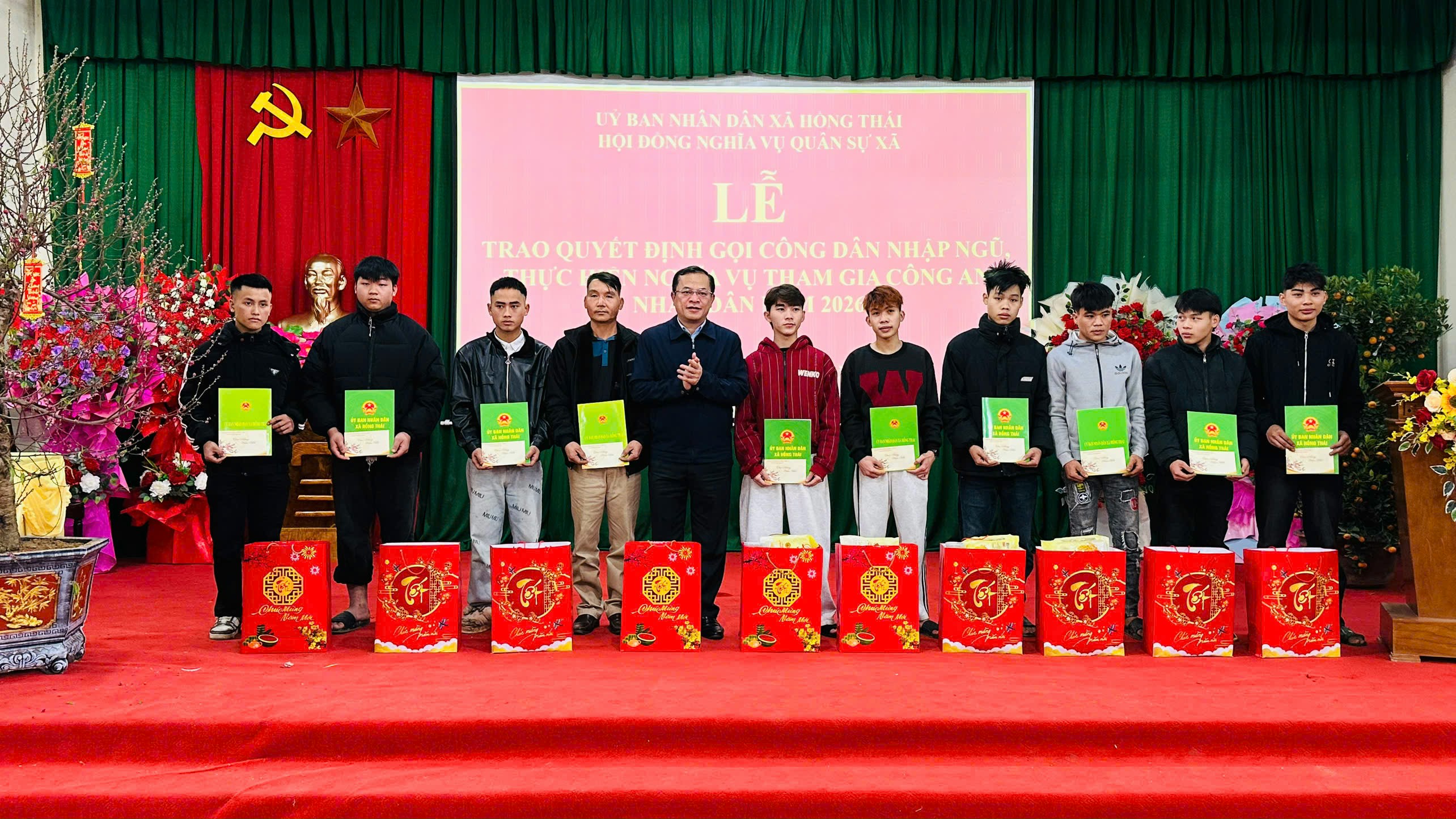 Chiều ngày 11/02/2026, Ủy ban nhân dân xã và Hội đồng Nghĩa vụ quân sự xã Hồng Thái đã tổ chức Lễ trao Quyết định gọi công dân nhập ngũ, thực hiện nghĩa vụ tham gia Công an nhân dân năm 2026.